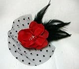 NEW Red Black and Feather Flower Veil Hair Clip and Pin, Limited.